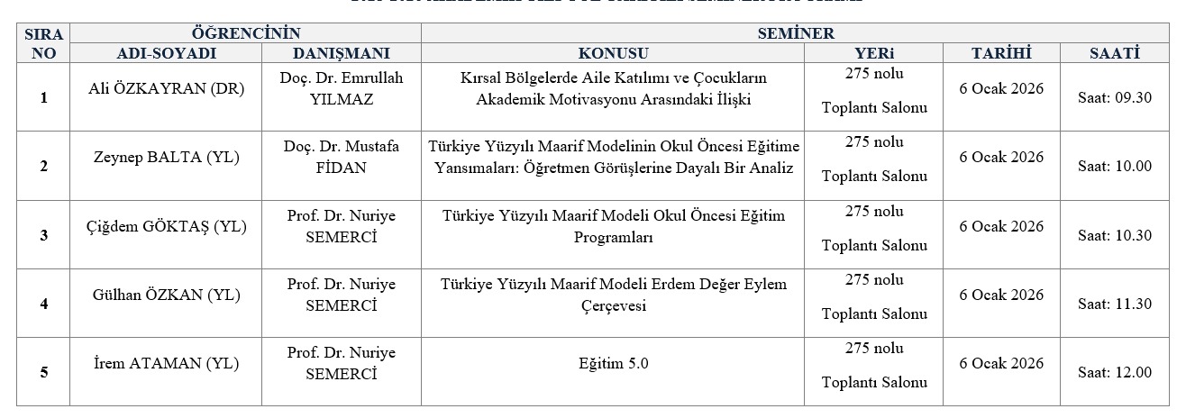 Seminer Sunum Programı (2025-2026 Akademik Yılı Güz Dönemi)